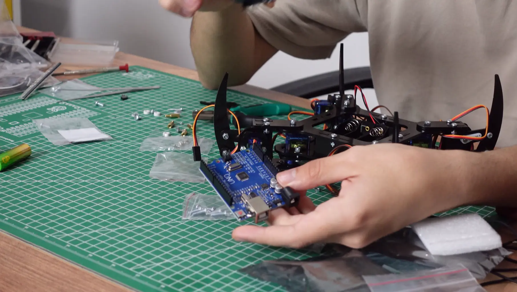Robotun donanımsal kurulumu tamamlansa da servo motorların hareket etmesi için Arduino kartına yazılım yüklenmesi şarttır.