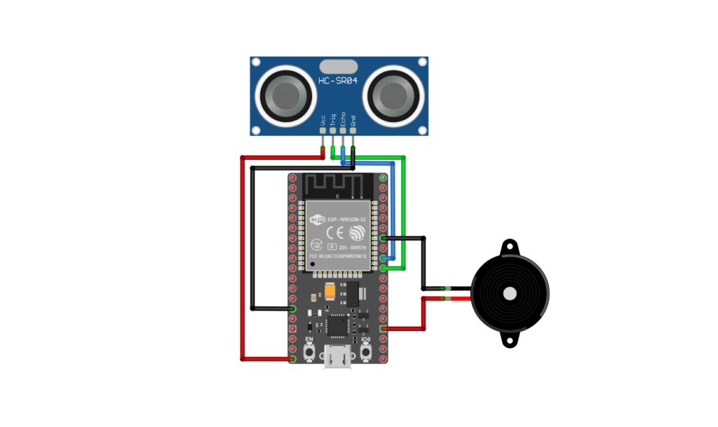 Kurduğumuz bağlantı sayesinde sensörden alınan mesafe verisi doğrudan ESP32 tarafından işlenir ve gerekli durumlarda buzzer aktif hale getirilir.