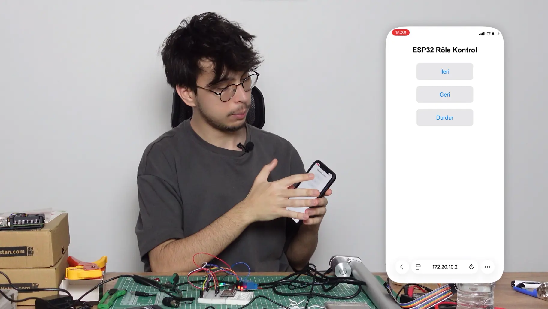 - Manuel Kontrol: ESP32 aynı zamanda yerel ağınızda bir Web Sunucusu (Web Server) oluşturur. Telefonunuzun tarayıcısından ESP32’nin IP adresine girerek sistemi İleri/Geri hareket ettirebilir veya anında durdurabilirsiniz.
